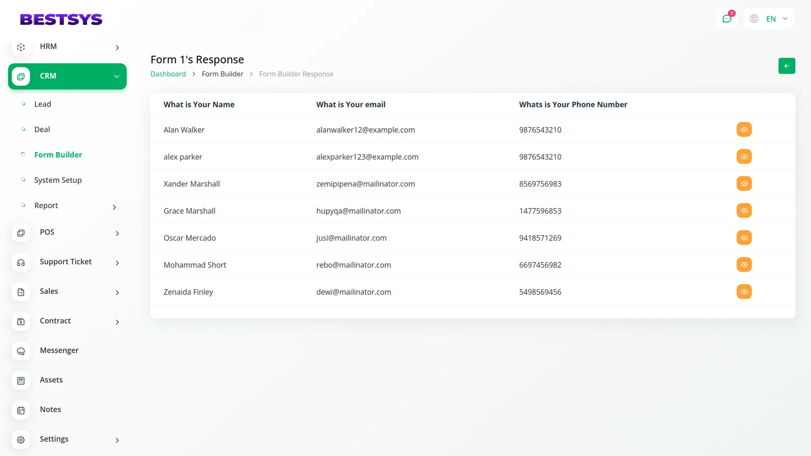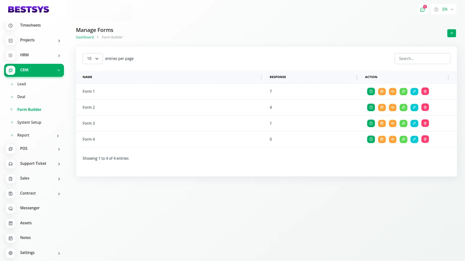 Within our platforms Actions section, youll find a range of functionalities tailored to streamline your workflow. Here, you can effortlessly copy the form link, access form field editing or viewing options, review responses, and seamlessly convert forms into leads or CRM entries. When transforming a form into a lead, all details are seamlessly transferred to the lead column. Conversely, converting it into CRM enables convenient form filling directly from the frontend. Additionally, you retain the flexibility to edit the form name to suit your preferences.