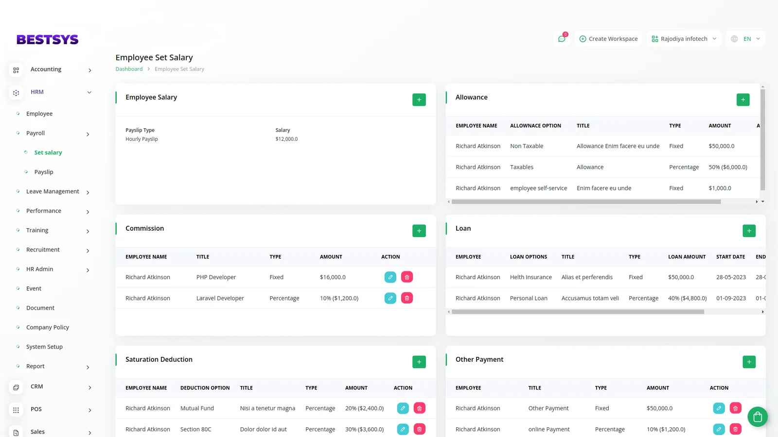 This comprehensive feature facilitates the activities of HR. It is easy to maintain a record of promotions, transfers, work trips, terminations, warnings, and other important aspects of HR.