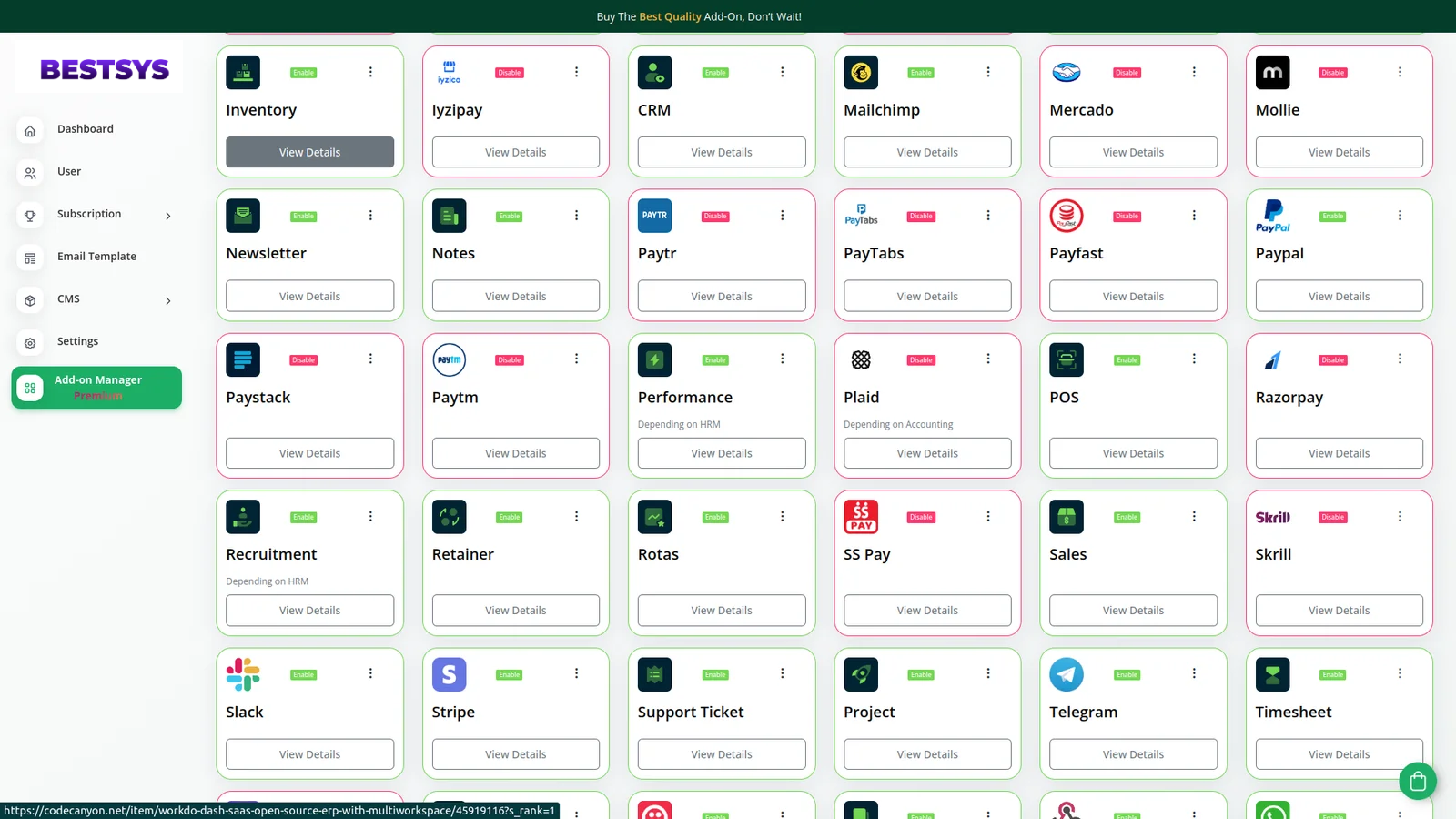 Access over Premium Add-ons for Accounting, HR, Payments, Leads, Communication, Management, and more, all in one place!