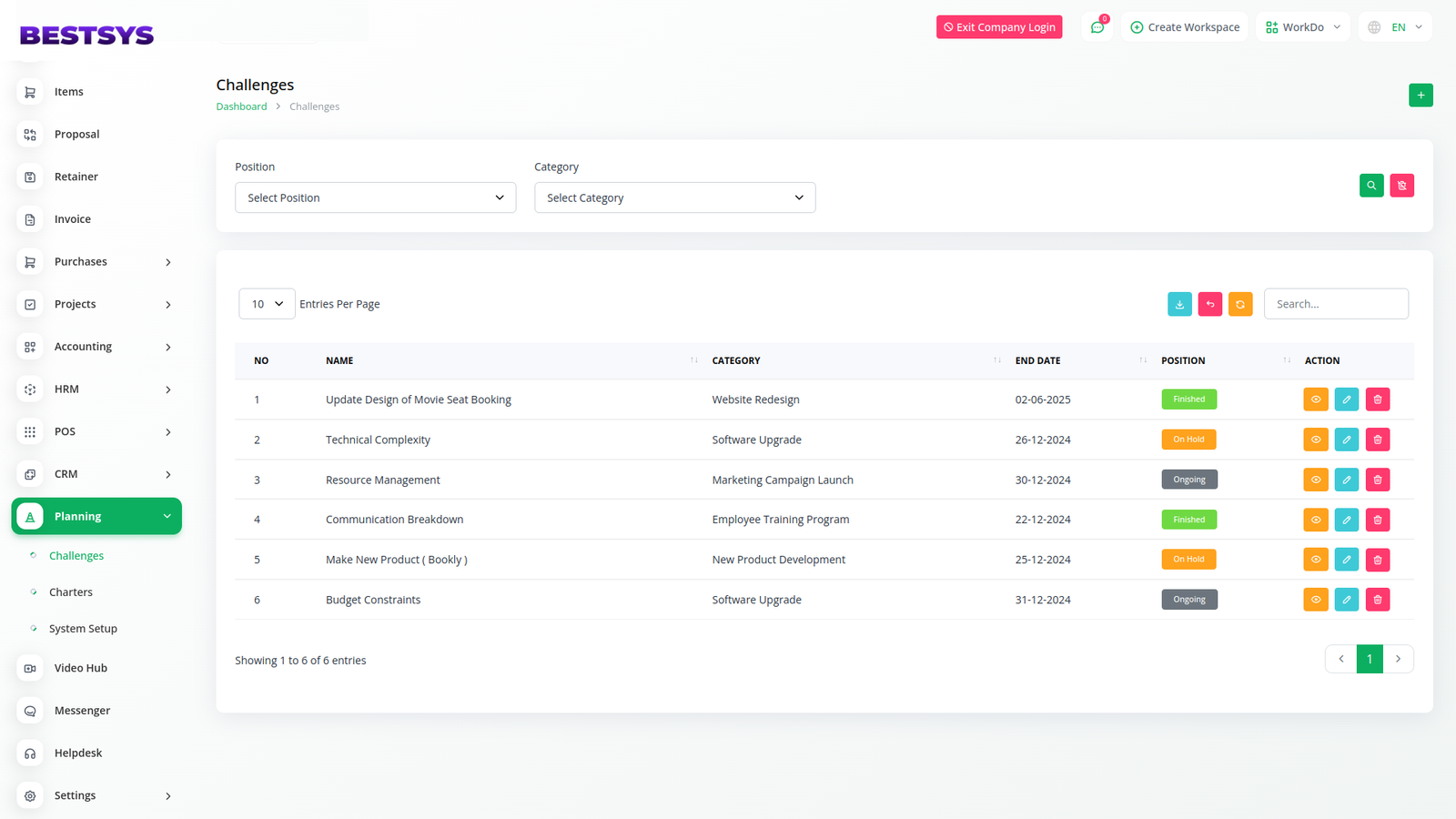 The Planning Module of Bestsys provides a centralized hub for efficiently managing challenges and charters. Say goodbye to juggling multiple documents and struggling to track progress. With this module, you can easily create, update, and monitor your challenges and charters within one intuitive platform. From defining objectives to tracking milestones, Bestsys empowers you to stay organized and focused on achieving your goals.