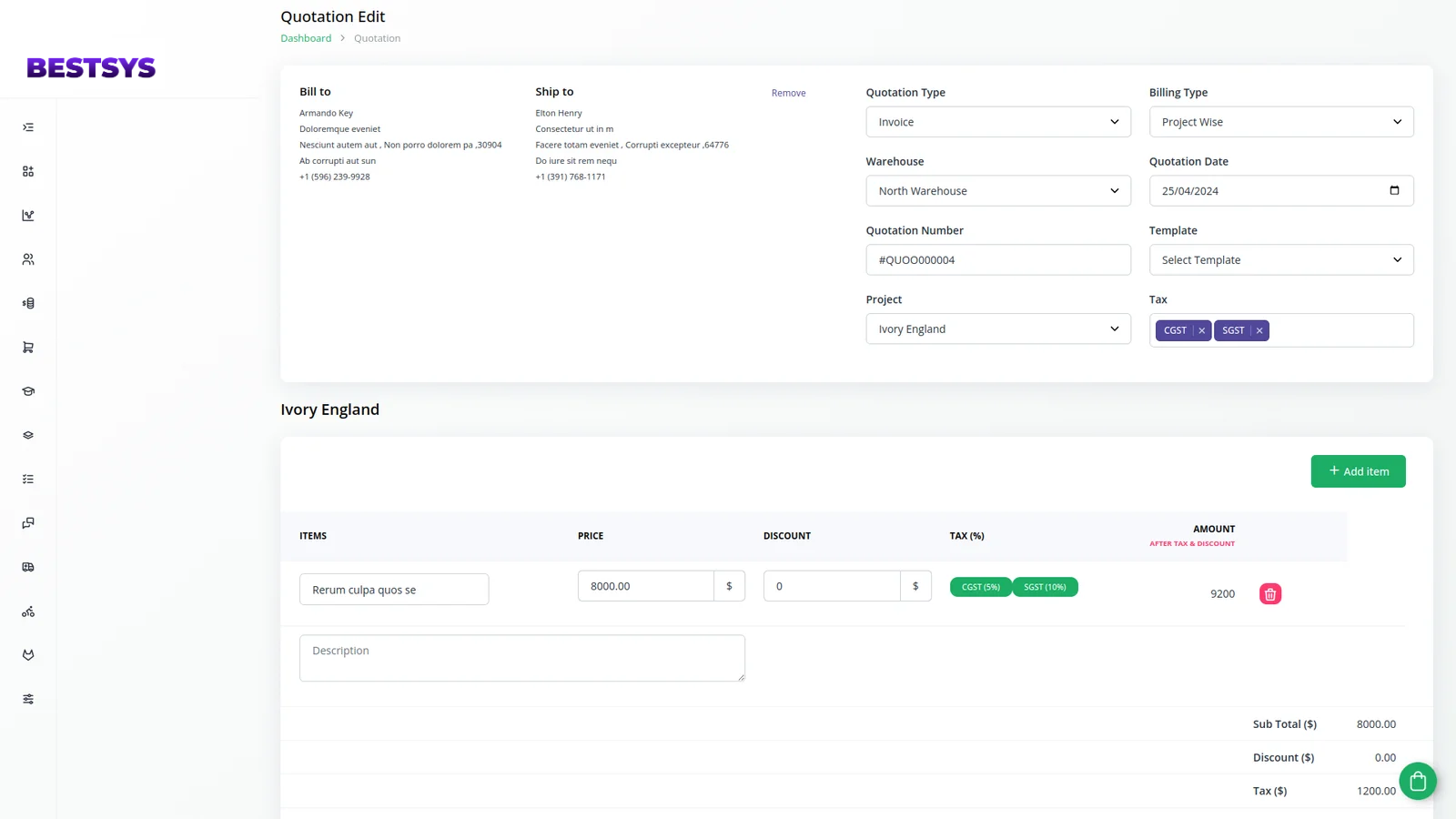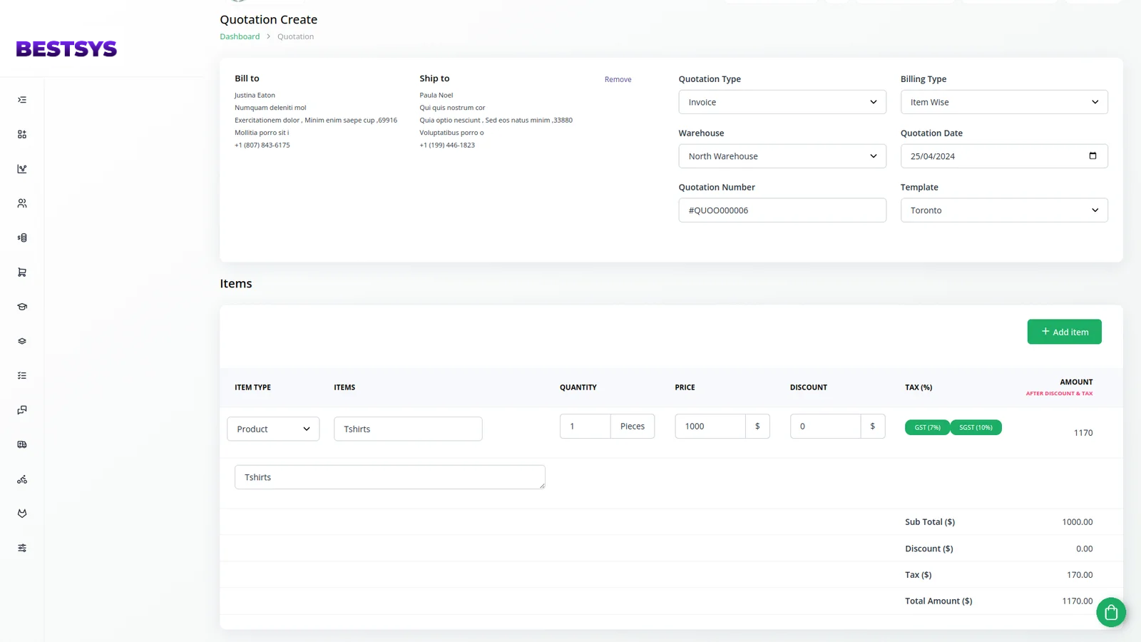 Quotation management is critical to any business, influencing customer perception, revenue generation, and overall efficiency. With Bestsys SaaS, you can revolutionize your quotation process, simplifying the creation, tracking, and conversion of quotes into invoices. Our comprehensive quotation module offers a range of features designed to streamline your workflow and enhance productivity.