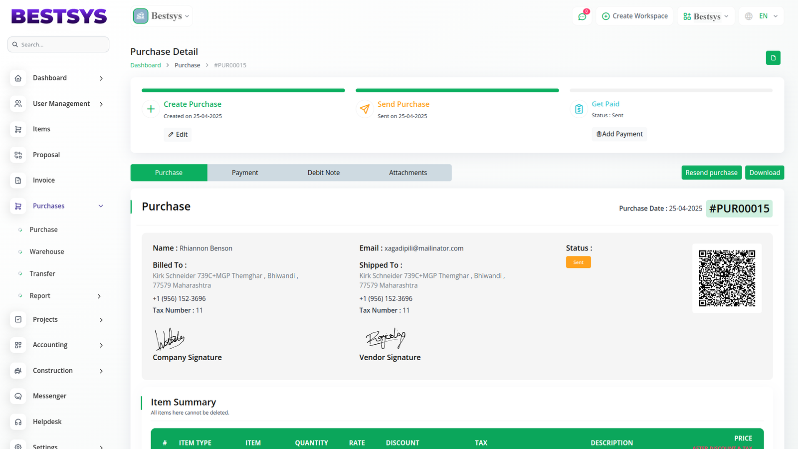 Vendors can also add their signatures within Bestsys AIâs purchase sectionâbut only when the conditions are met. Vendors must log in and have signature permissions assigned to their role by the company. Once authorized, the system allows them to sign documents directly within the platform. If the vendor hasnât signed yet, Bestsys AI will display a clear âNot Signedâ status, making it easier for the company to track the completion of the process. Bestsys AI ensures that every part of the purchase process is visible, accountable, and secureâaccelerating collaboration between all parties.