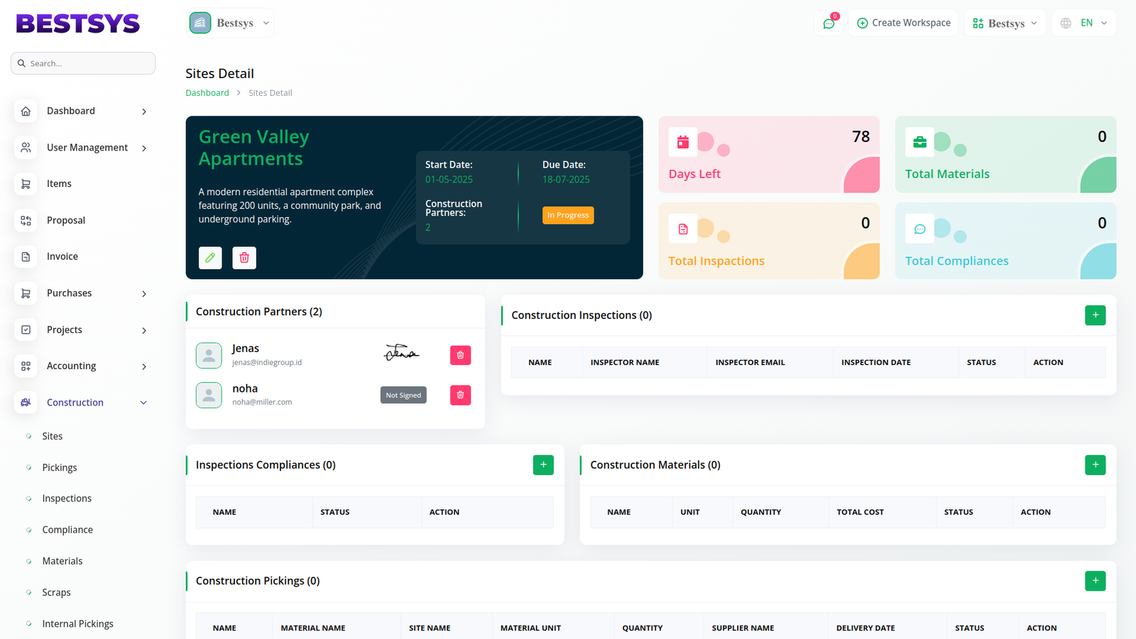 In the Construction Sites section, the Signature Add-On in Bestsys AI ensures that only the appropriate construction partners have signing rights. These partners must log in and be assigned signature permission by the company under their specific role. Bestsys AI keeps everything secure and in place by limiting signing responsibilities to the appropriate parties, allowing the company to view the submitted signatures without interfering. This level of control makes it easier to track progress on construction sites and ensures all stakeholders are on the same page, from start to finish. By integrating these signature features into Bestsys AI, the entire process becomes more streamlined, efficient, and secure. It's the future of business operationsâ native, AI-powered, and designed to make your work life easier and more productive than ever before.