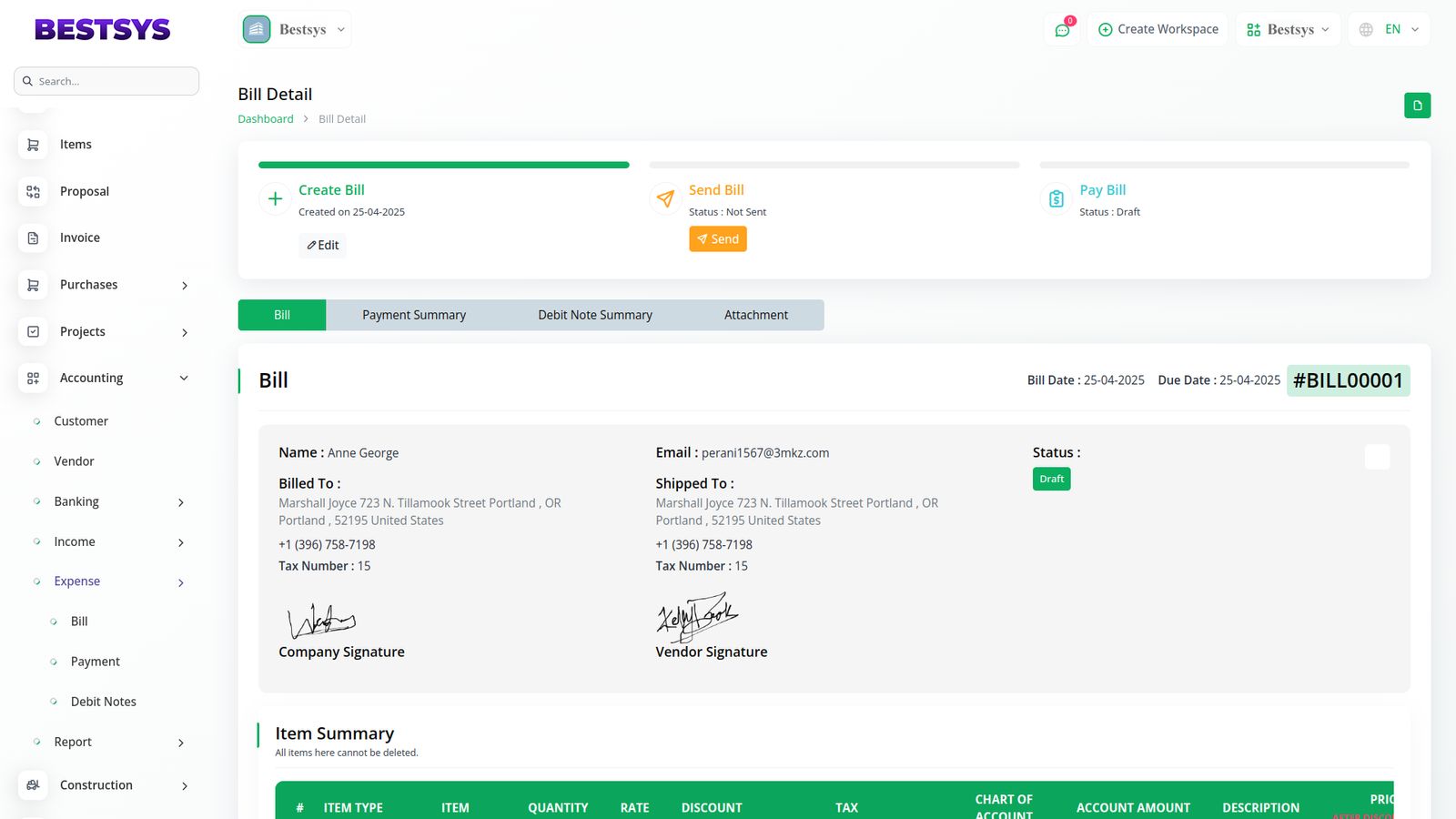 With Bestsys AI, signing bills is hassle-free for the company. The signature button is readily available as long as the Signature Add-On is enabled. No extra permissions or configuration is needed for the company to finalize and sign bills. This not only expedites the approval process but also keeps all signed records directly within Bestsys AI, making internal audits and future reference a breeze. Once both the company and the vendor have signed, the bill is officially recognized, and everything is documented in one placeâready for easy access whenever required.