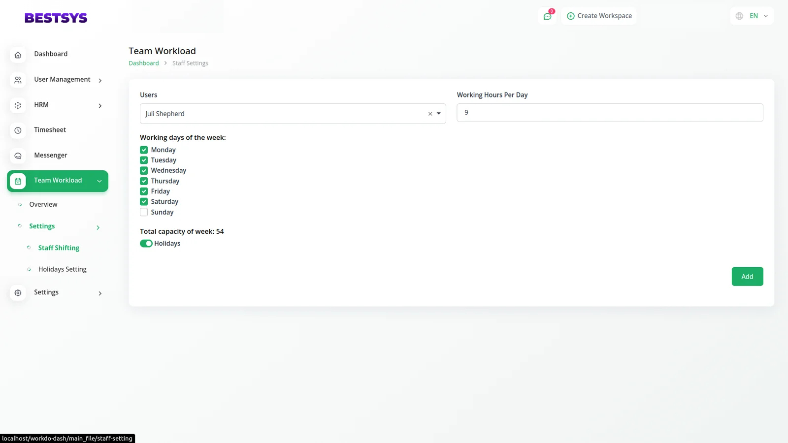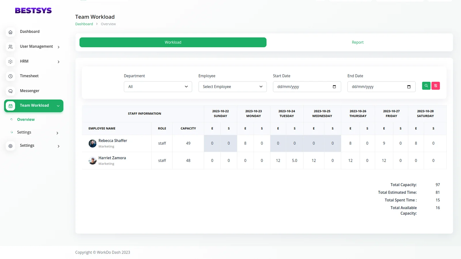 With the Team Workload module, we can find out the total number of hours an employee has the ability to work in a week and the total number of hours worked in these occupations.