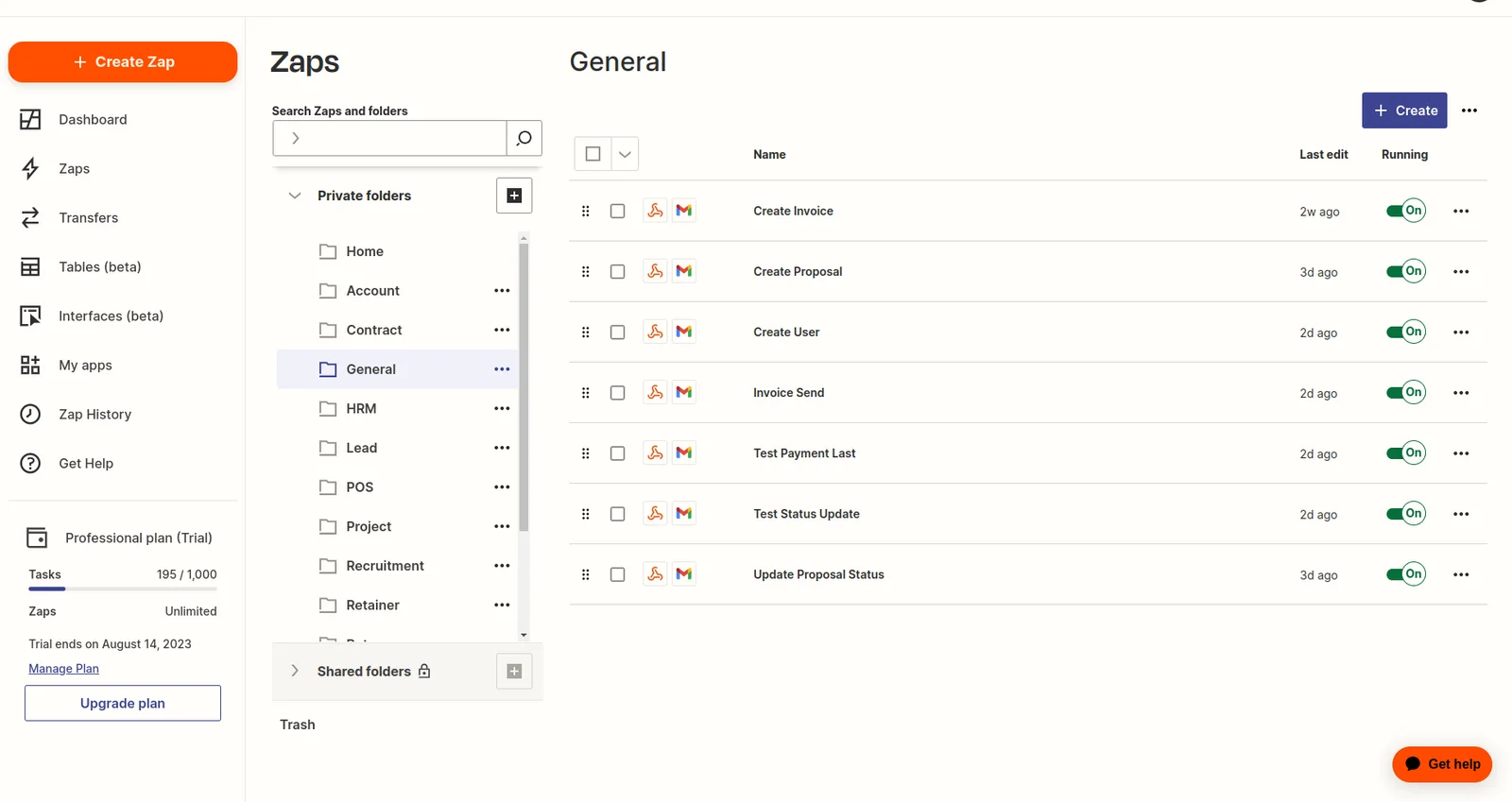 You can add a Zapier event in the settings page and you can also edit or delete functionality for Zapier. It is used for invoice, customer, retainer, proposal , user , customer and so on.